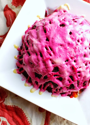 eks see ole selline ilus mälestus lapsepõlvest. aga ükskord jäi mulle ette see link siin – ja ma olin sekundiga “ära tehtud”. ma ei hakanud neid etappe üles pildistama, need niigi kenasti siin üleval, aga salat sai sama ja hea, küll pisut teisel kujul.