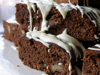 Valge šokolaadiga ülevalatud šokolaadiruudud maitsesid hää. Kreeka pähkleid ja ohtralt šokolaadi sisaldav kook jääb tekstuurilt täpselt keeksi ja brownie vahele, sest ei ole nii kuiv kui tavaline šokolaadikeeks ega ka nii niiske kui peab jääma üks õige brownie:)) pähklid sobivad ülihästi- jäävad mõnusalt krõmpsuma!
