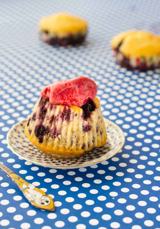 Mustikased polentakoogid vaarikasorbetiga