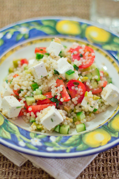 Vahelduseks üks retsept, mis on nii lihtne, et isegi koostisainete koguseid pole tarvis eraldi välja tuua. Olemuslikult on see salat üpriski sarnane klassikalisele Araabiamaades tuntud tabbouleh salatile. Aga siin on kasutusel pärlkuskuss, mille terad on mitu korda suuremad kui tavalisel kuskussil ja seetõttu mõjuvad salatis pigem pasta taoliselt. Neile, kellele kusskussi veidi saepuru meenutav tekstuur ei meeldi, võiksid pärkuskussi proovida küll. Sobib nii eraldi söögikorrana kui suvisel ajal grilli kõrvale. Eriti mugav ka tööle kaasa pakkida.