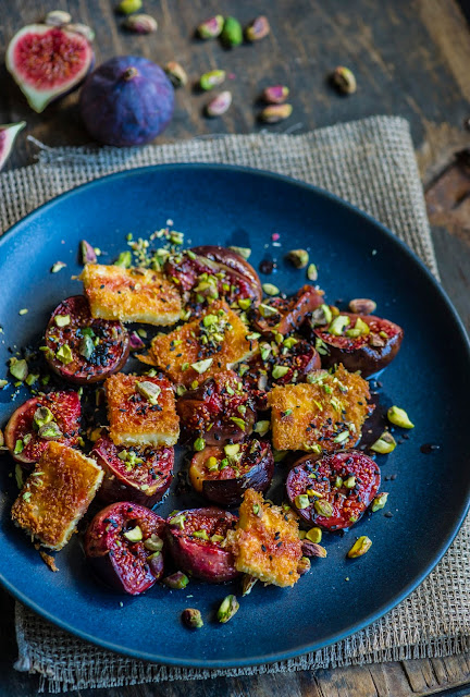 Saades innustust viigimarjadest, proovisin seekord viigimarju sobitada halloumi juustuga, mis on ideaalne juust grillimiseks ja praadimiseks. Mängides tekstuuridega, paneerisin seekord halloumi juustu panko paneeringus, mis jääb hästi krõbe ja kohev. Panko paneering on midagi sellist, mida tasub kindlasti avastada, sest võrreldes näiteks meie riivsaiaga jääb pankoga paneerides paneering palju krõbedam.
