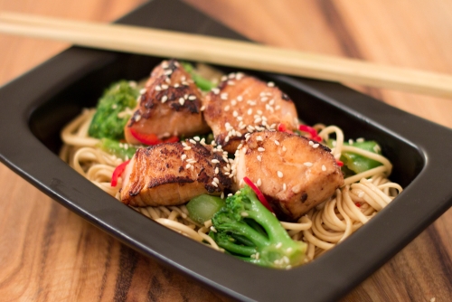 Teriyaki lõhe brokoli ja nuudlitega