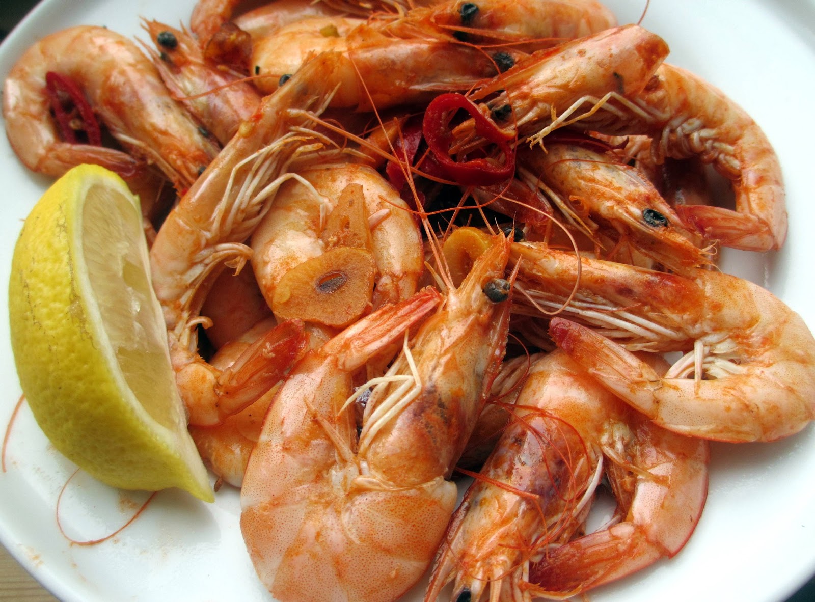 Viiluta tšillipipar ning küüslauk. Lisa pannile oliivõli, tükeldatud tšilli ning küüslauk ning prae kergelt u. 1 minut. Lisa krevetid ning maitsesta kergelt soolaga.  Kui krevetid hakkavad muutuma roosaks, keera krevetid pannil ümber ning küpseta teiseltpoolt. Väldi üleküpsetamist. Serveeri sidruniveerandikega.